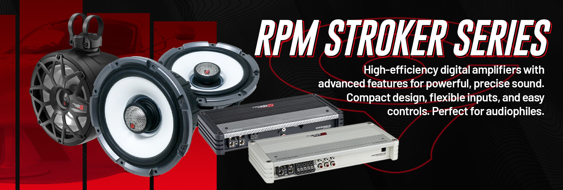 For those who crave precision, power, and innovation, the RPM Stroker Series Amplifiers deliver on all fronts. Engineered for superior performance, these amplifiers feature HUGE dynamic headroom to ensure they always sound more powerful than their rated specs, offering an audio experience that’s as bold as it is breathtaking.